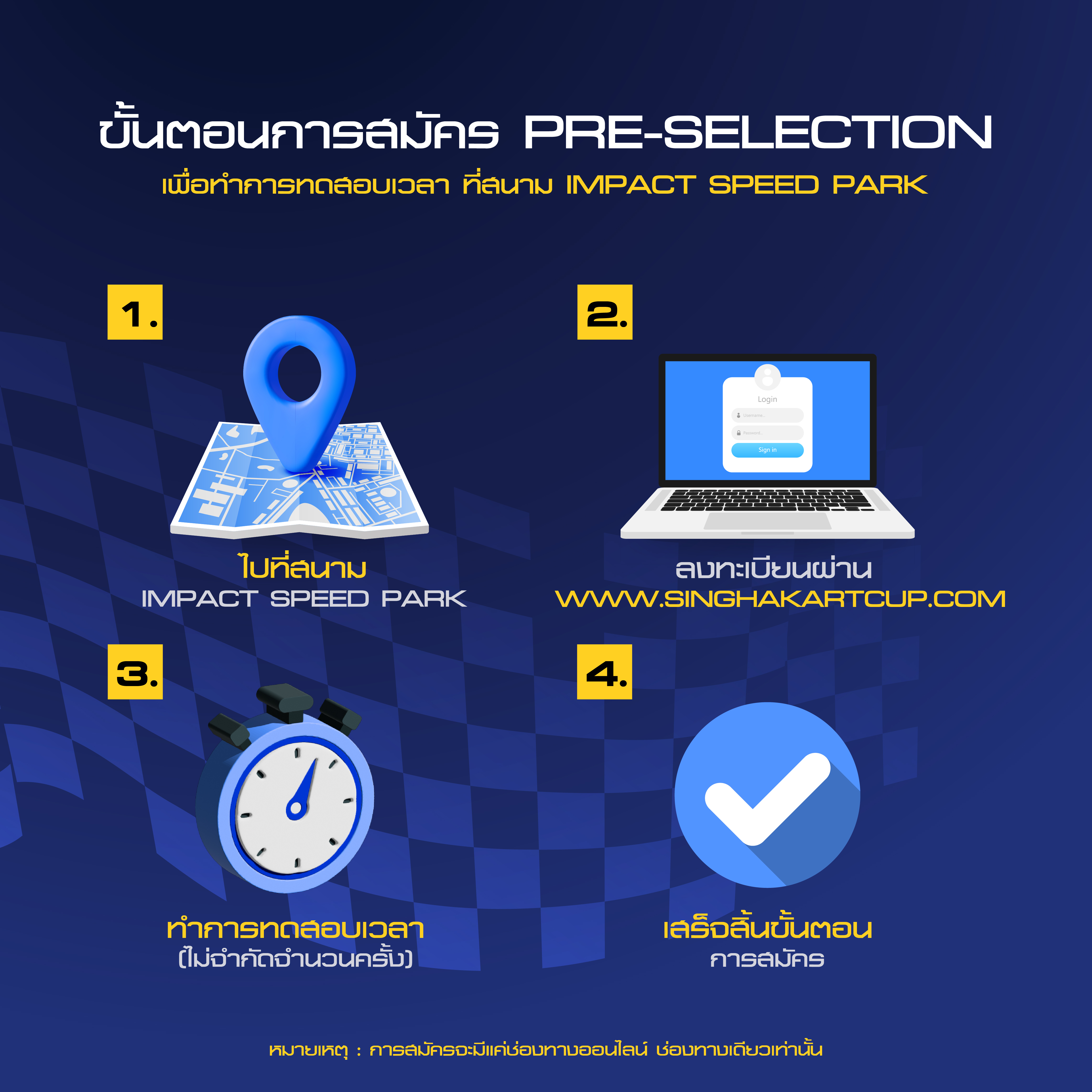 ขั้นตอนการรับสมัคร PRE-SELECTION เพื่อทำการทดสอบเวลา ที่สนาม IMPACT SPEED PARK
